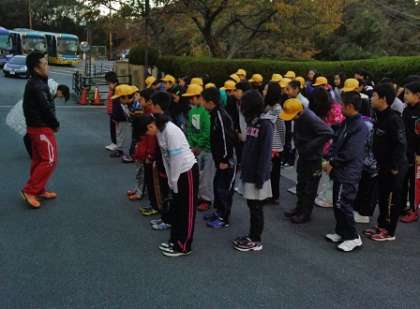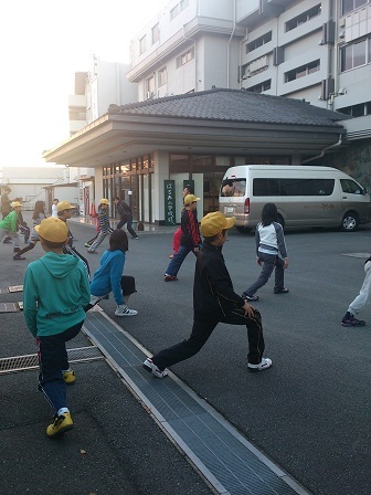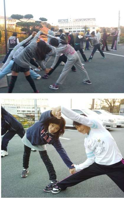 校長先生のお話を聞いた後、朝の体操(ストレッチ)をしました。