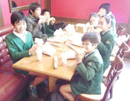 昼食はグループごとにミールクーポンを使って食べます。