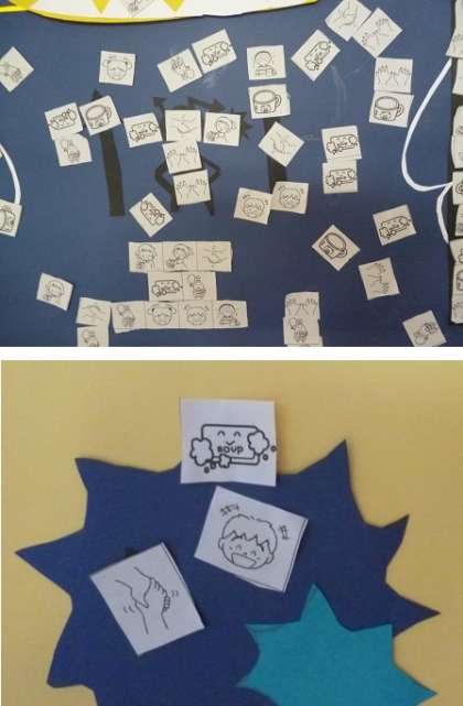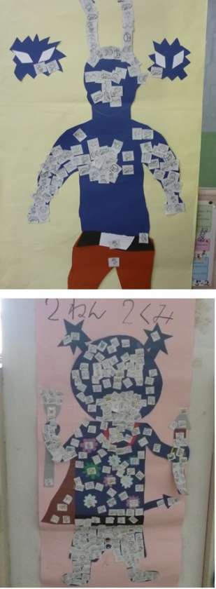 どのクラスもまずは、目や特徴のあるところがシール(小さいカード)で覆われているようです。