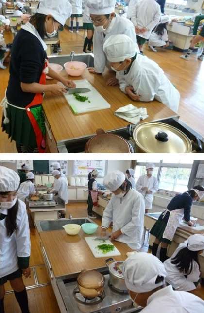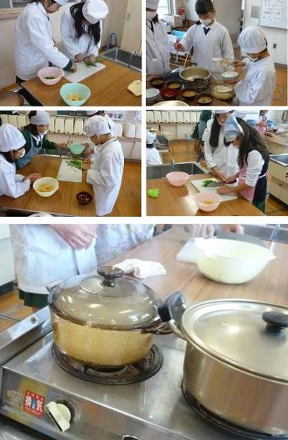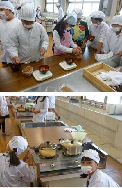5年2組さんが、家庭科の調理実習で「ごはん」と「みそ汁」を作りました。