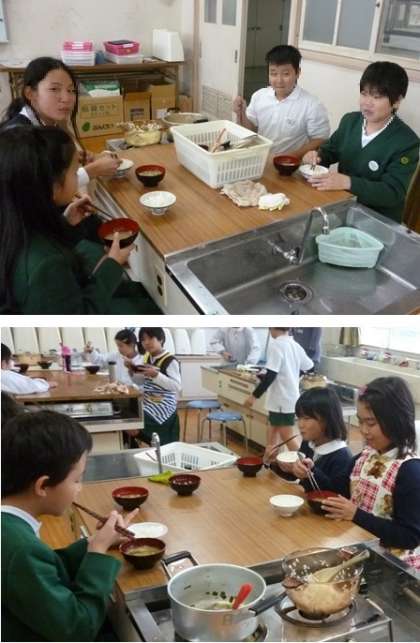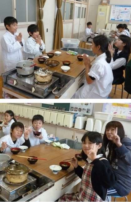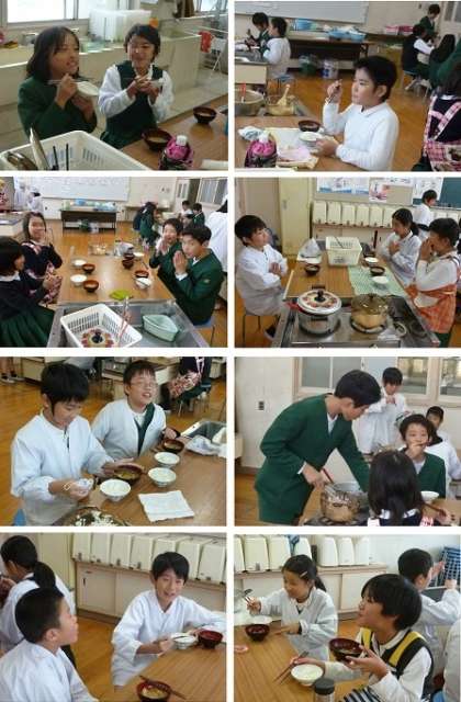 ご飯とみそ汁が無事完成しみんなで試食です。