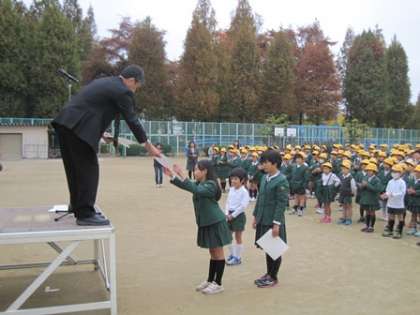 その後、絵画で入賞した児童と子ども会のキックベースボールチームに賞状が贈られました。