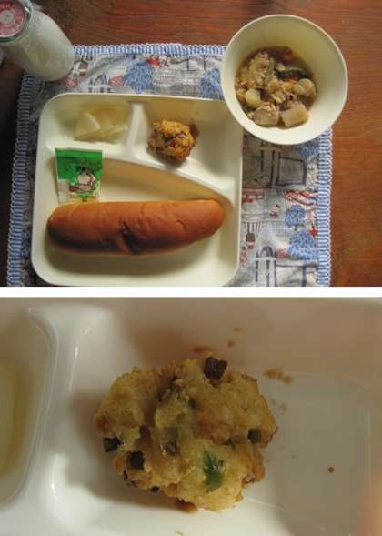 たこボールは、給食室で1個ずつ手作りで作られています。