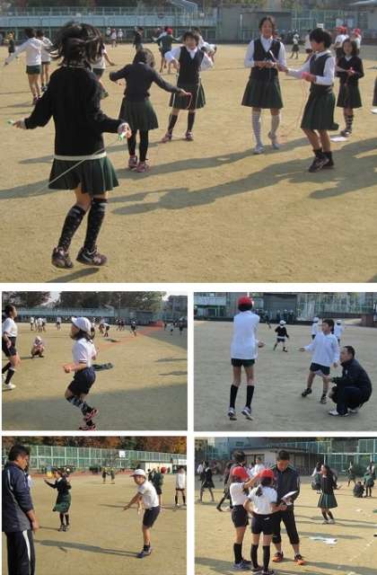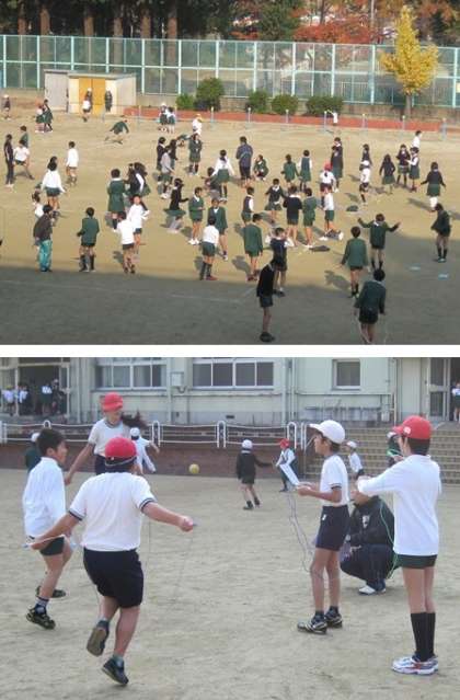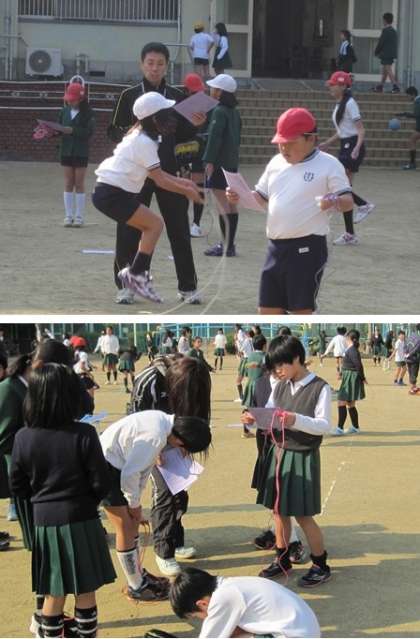 15分休憩になるとたくさんの児童が運動場に出て、検定を受けていました。