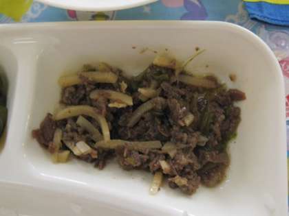 中国語で、チンジャオ(青椒)は、ピーマン、ロウスー(肉絲)は、肉を細く切ったものという意味です。ニュー(牛)は、牛肉のことです。