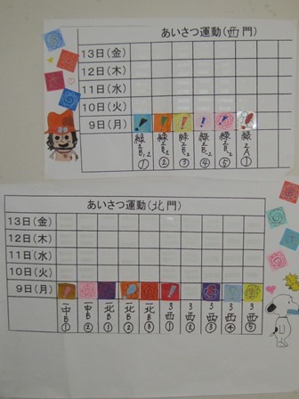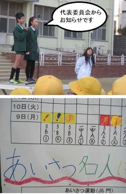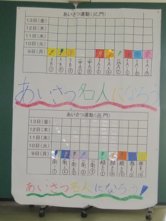 今回は代表委員会の人たちが西門と北門に立ってあいさつを呼びかけます。