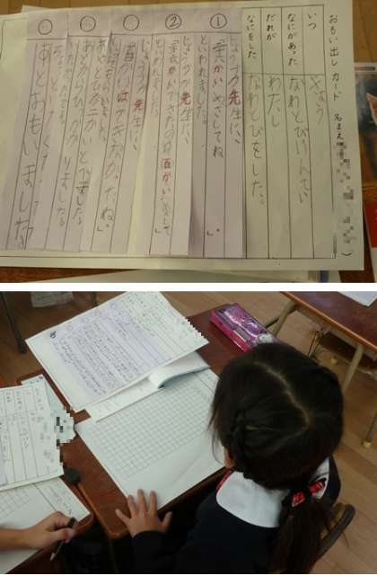 作文メモを見ながら丁寧な字で作文を書いていました。