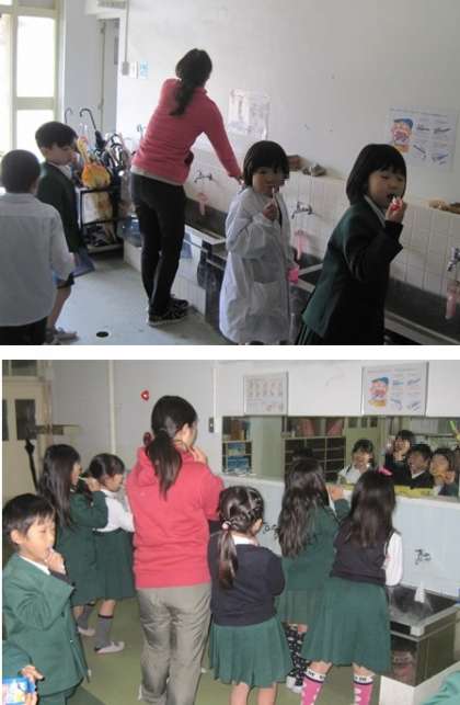 歯みがき週間中に児童たちが歯みがきをしている様子を写真にとりました。