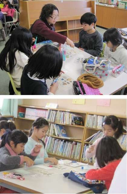 みどり小学校図書室でジュニアクラフトがありました。