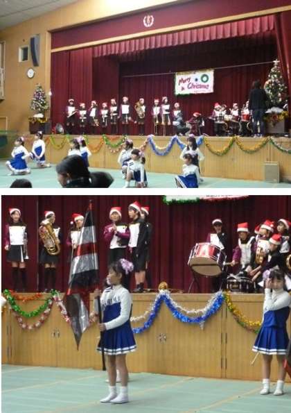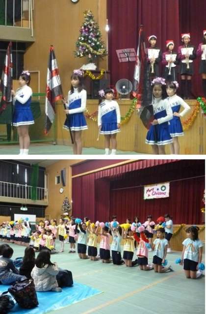 みどりマーチングバンドの演奏・演技からクリスマス会がスタートしました。