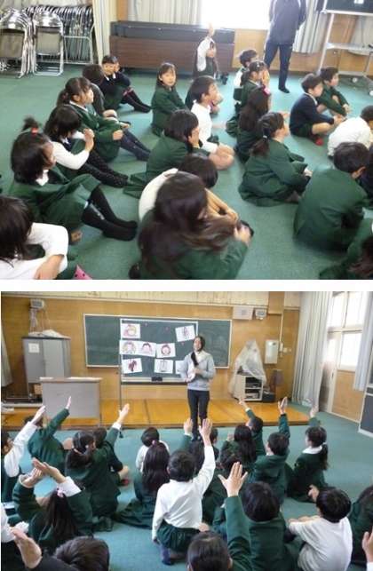 今日は2年1組の児童がマジェサ先生と英語の勉強をしました。