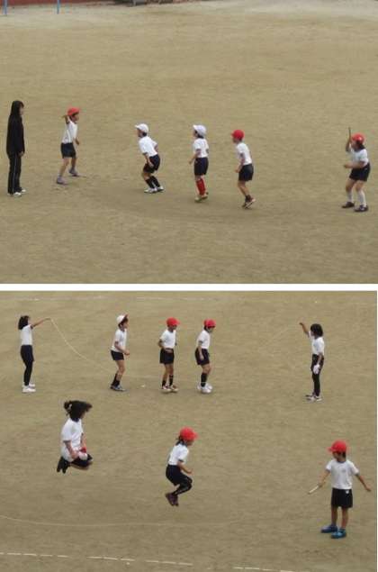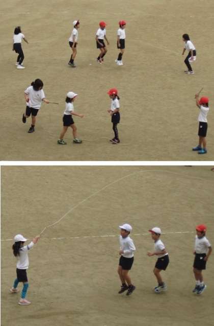 チームのみんなの呼吸が合わないとなかなか続かないのですが、お互いに声をかけあいながら1回でも多く跳べるようにがんばっていました。