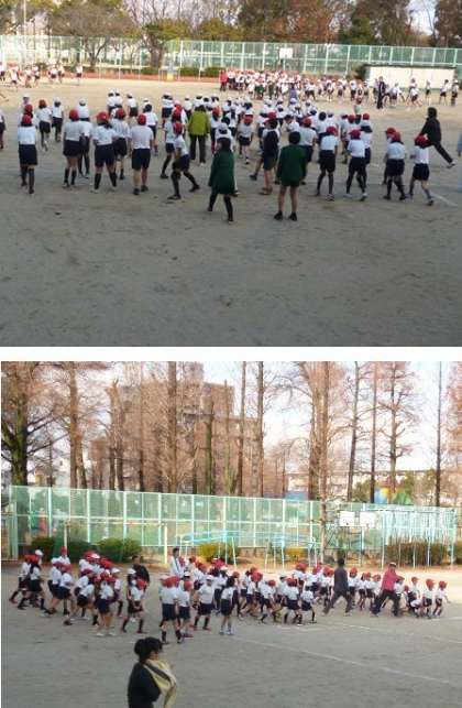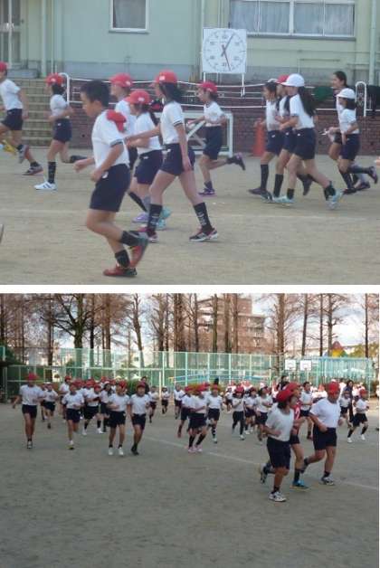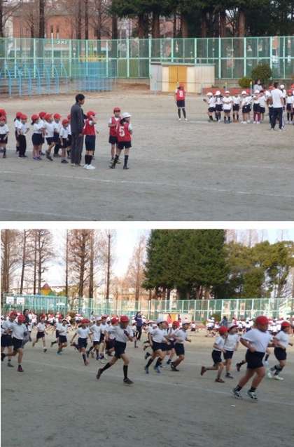 まず、高学年からスタートし、中学年、低学年は1分後から走り始めました。