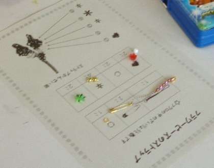 まず、配られた材料を説明用紙の上に乗せて・・・