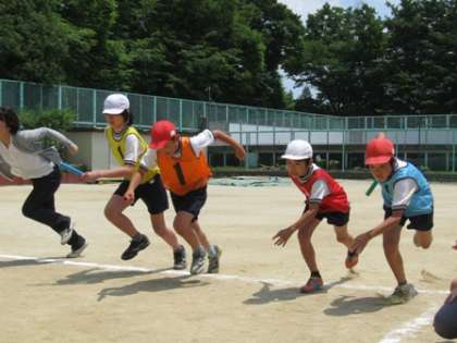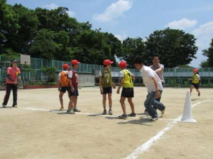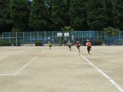 リレーでは、子ども達で対戦した後、最後はお父さん代表7人との決勝でした。