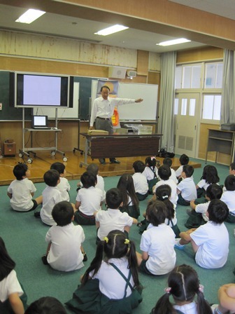 アニメを交えた 楽しいお話を講師の方にしていただいたので、1年生は真剣に前を向いてお話を聞いていました。
