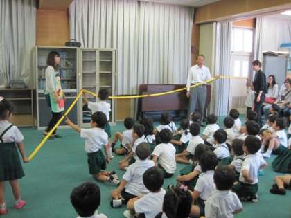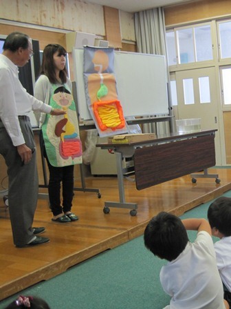 おなかの中をわかりやすく しめした模型?を使って腸が長いことを教えていただきました。腸がすごく長くてみんなびっくりでした。