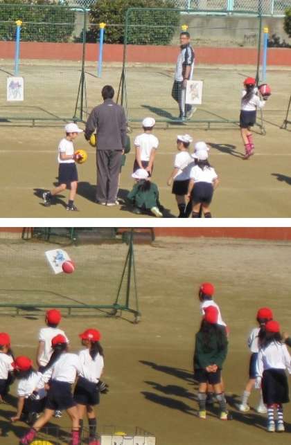 2年生 まとをめがけて ボールをなげました