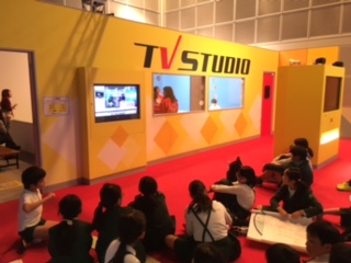 キッズプラザに行ってきました。社会科や総合の学習でメディアのことについて学習し、ニュース番組作りを体験してきました。キッズプラザの人がわかりやすくニュース番組の撮影の説明をしてくれ、子どもたちは真剣に話を聞いていました。