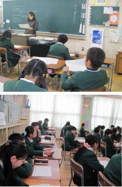 道徳の資料(地震を題材にしたもの)を読んで話し合ったり、新聞記事や被害の状況を写した写真を見たりしました。