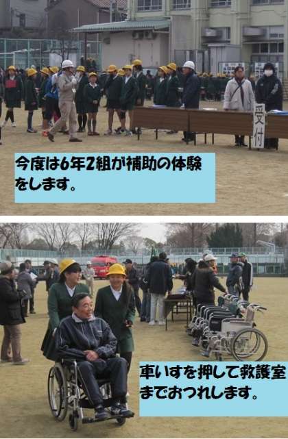 6年生は、ブースをまわるだけでなく、避難してきた地域の方の補助をする仕事の体験もさせていただきました。