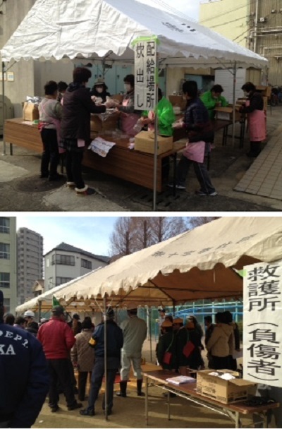 炊き出しの配給所ができたり、負傷者の救護所ができたりして