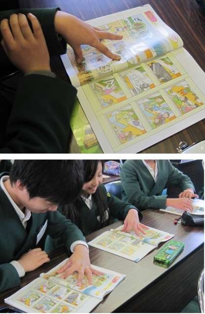 この日は、C−NETのマジェサ先生が英語で言った5つの言葉の絵を指で押さえるというゲームをしていました。