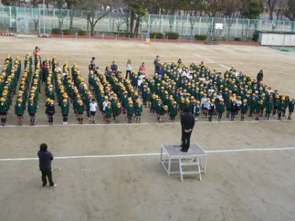 25日の土曜授業の日は暖かかったのですが、日曜日からまた気温が下がり今日の児童朝会はとても寒かったです。