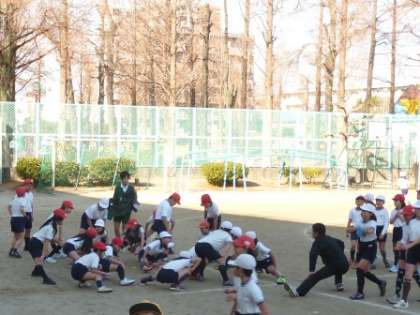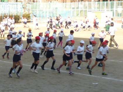 今日も走っていると公園からかわいい応援団の「がんばれー」の声援が聞こえてきました。写真はその小さな応援団と力走している校長先生です。