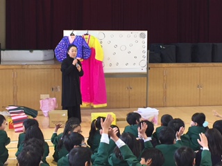 はじめに、ソンセンニムから韓国の民族衣装について教えてもらいました。