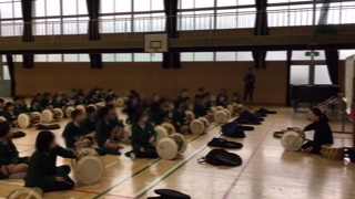 そのあとは、チャンゴをみんなで叩き、リズムやバチ捌きに親しみました。