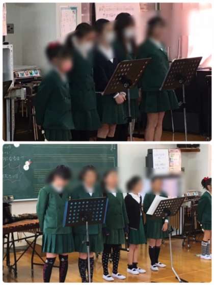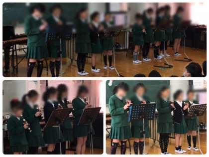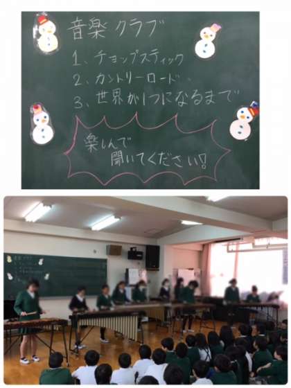 音楽クラブの児童10人が、一年間の練習の成果を本日発表しました。会場の音楽室が満員のお客さんに見守られる中、次の3曲を披露しました。