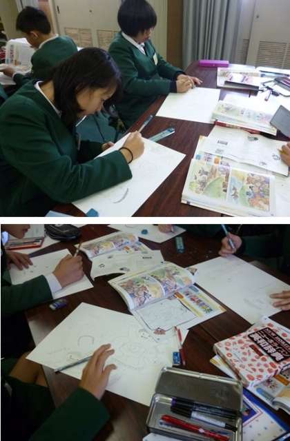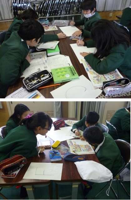 グループごとに昔話のパロディーを作っています。「桃」太郎が「○○」太郎になったり大きな「かぶ」が、大きな「○○」になったりといろいろ工夫をこらしてストーリーを考えていました。