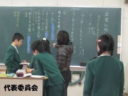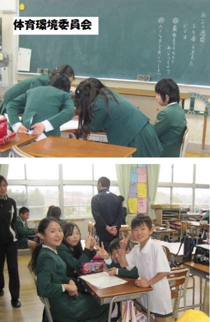 体育環境委員会は、あいさつ週間の準備を、代表委員会は卒業お祝い集会のことについての話し合いをしていました。