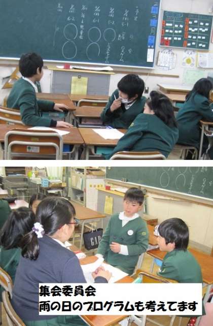 集会委員会、保健委員会、給食委員会の活動の様子です。