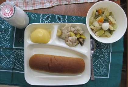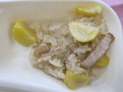 今日の給食には、「中華おこわ」が出ました。くりが入っていてとってもおいしかったです。