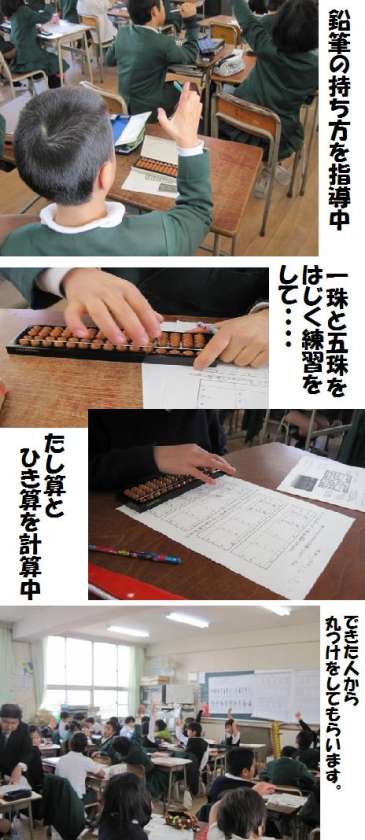 今日と昨日の2時間、三年生はそろばん教室がありました。