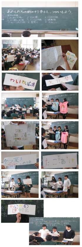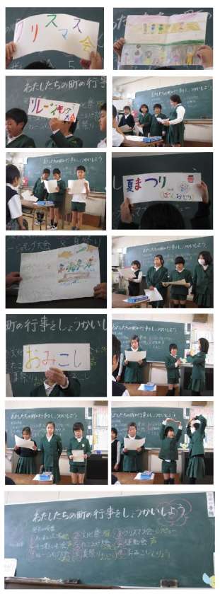国語の「わたしたちの町の行事をしょうかいしよう」という単元で各クラス、発表会を行いました。それぞれ、絵を描いたり、写真を準備していたり工夫をこらした発表となりました。