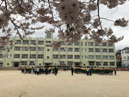 天候も良くなり運動場で運営委員会の進行のもと行われました。2年生からは、プレゼントがありました。