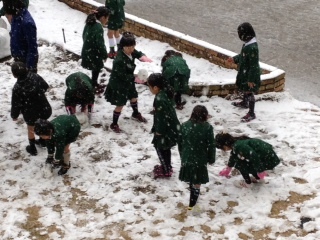 1年生が生活の学習で少しだけ雪をさわっていました。