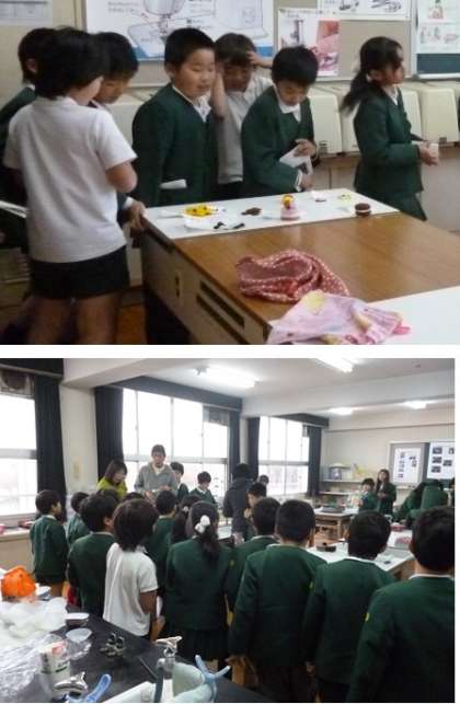 3年生のクラブ見学の様子です。1組と2組に分かれ、7つのクラブを見学して回りました。調理手芸クラブでは、白玉だんごをごちそうしていただいて、みんなニコニコ顔でした。