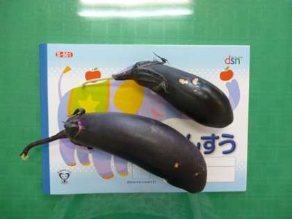 2年生の学習園に植えてある ナスビが実りはじめました。