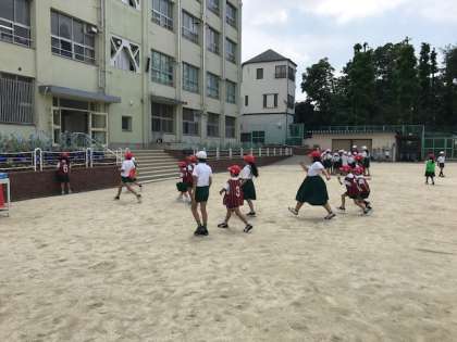 今日の昼休みは、縦割り班で行う「わんぱくあそび」でした。「ドッジボール」「自由遊び」「ながなわ」の3つのグループに分かれて行いました。梅雨の合間の晴天に恵まれ、楽しく過ごすことができました。
