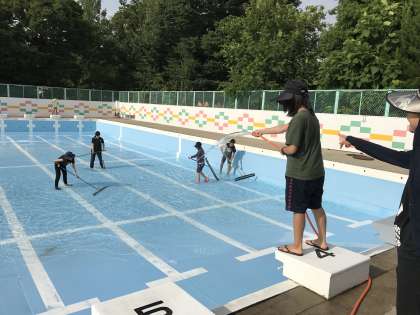 放課後に先生たちでプールを綺麗に掃除しました。綺麗になったプールで明日からも楽しく泳ぎましょう!!