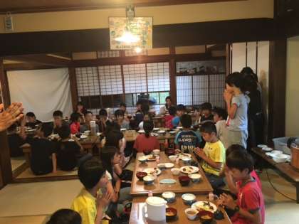 林間学習初めての朝食をいただきました。朝からおかわりをして元気な様子でした。
