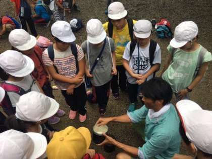 これからカレー作りをはじめます。宿舎の方の説明を熱心に聞き、これからグループで協力して作ります。美味しいカレーが出来上がるのが楽しみです。