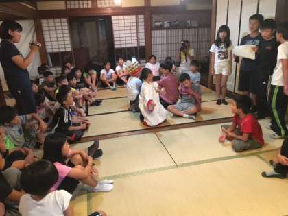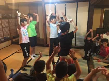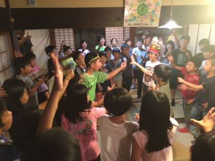 夜も雨が降ってしまったので食堂でレクリエーションを行いました。劇やなぞなぞ、ゲーム、歌などみんなで林間学習最後の夜を楽しみました。