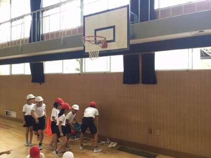 日頃ふれあうことの少ない3年生と5年生で借り物競走の遊びをしました。司会・進行は5年生の運営委員の児童が中心に進めてくれました。