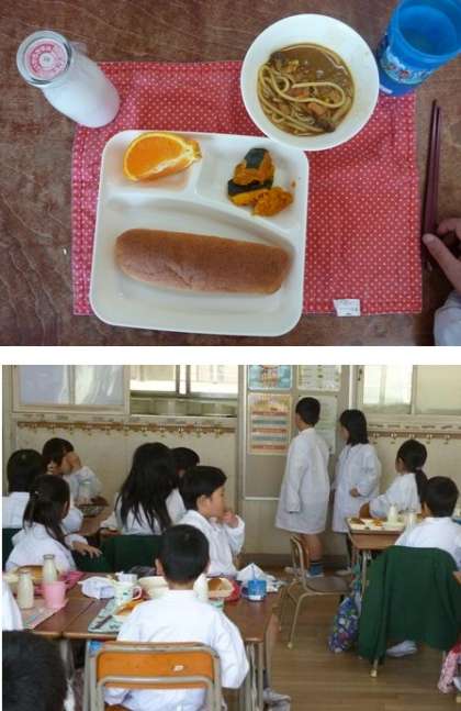 4月の給食には、あまなつかん、みかん(かんづめ)やりんご(かんづめ)がつく予定です。