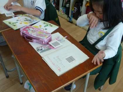 3年生の授業風景(算数)です。かけ算の学習をしていました。